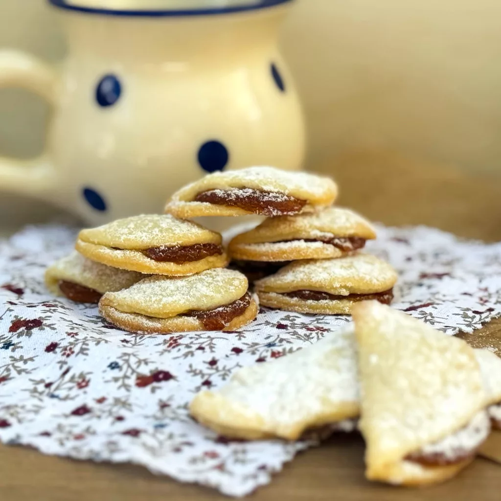 A puha és omlós kis tésztákat, baracklekvárral töltjük gazdagon, majd sülés után porcukorral hintjük.